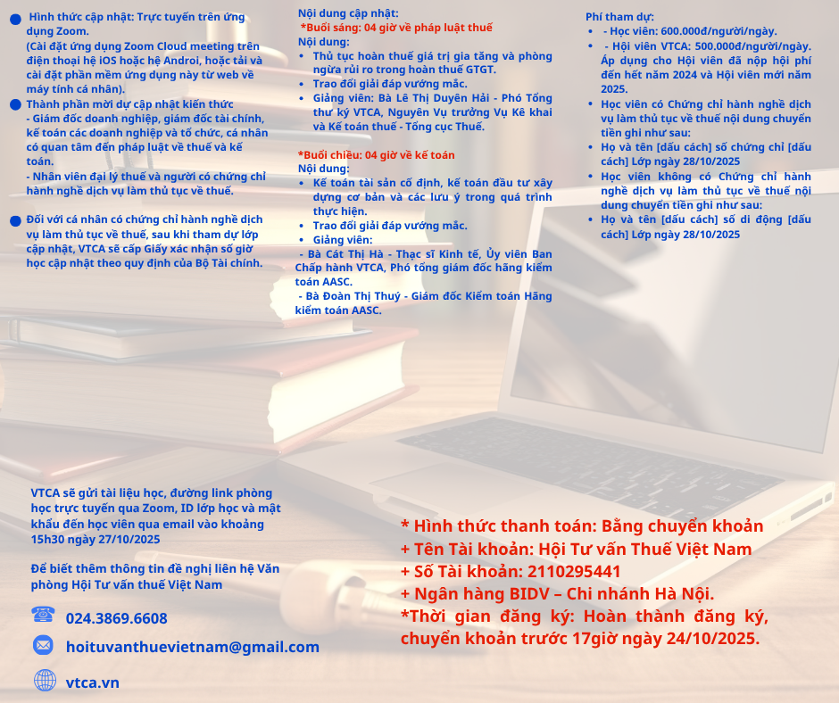 VTCA tổ chức lớp cập nhật kiến thức thuế và kế toán tháng 10/2025